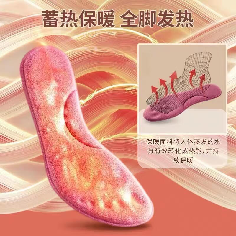 冬季保暖防寒恒温鞋垫男女加厚加绒吸汗透气自热鞋垫女款加热绒垫 寒冬暖脚-快速升温玫红【10双装】 39-40