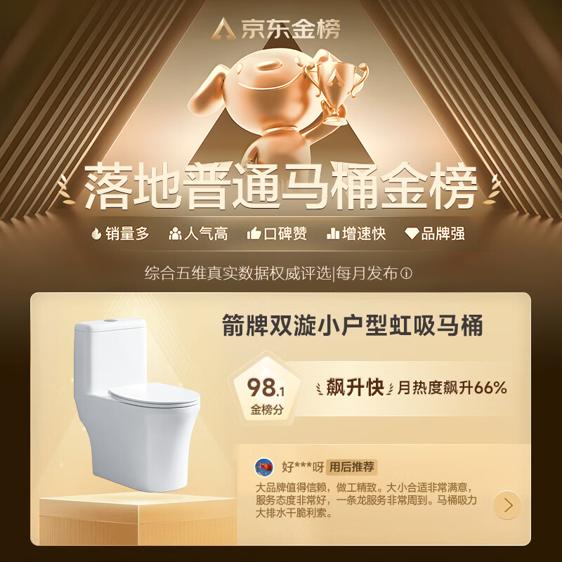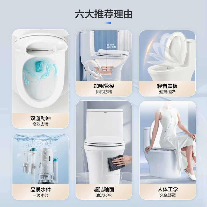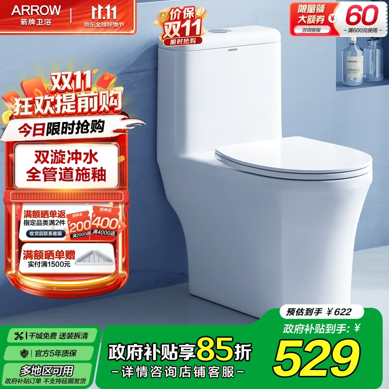 箭牌(ARROW)卫浴大冲力喷射虹吸式防臭节水马桶家用缓降盖板连体抽水坐便器 【金榜爆款】双龙卷漩吸12616 305/300mm
