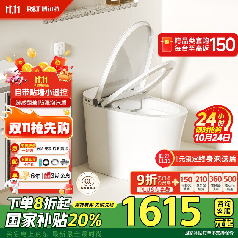瑞尔特(R&T)轻智能马桶泡沫盾脚感翻盖冲水无水压限制一级水效M30-305