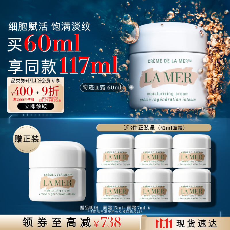 海蓝之谜(LA MER)奇迹面霜60ml保湿修护紧致护肤品套装化妆品礼盒生日礼物送女友