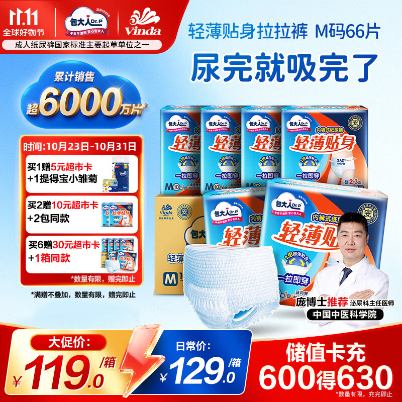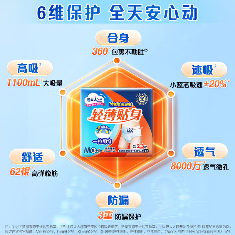 包大人(Dr.P)轻薄成人拉拉裤M66片(腰围:50-120cm)老年人产妇 内裤型纸尿裤
