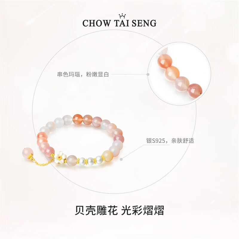 周大生(CHOW TAI SENG)玛瑙桃花手链银女轻奢设计感首饰生日礼物送女友 元气桃桃手串