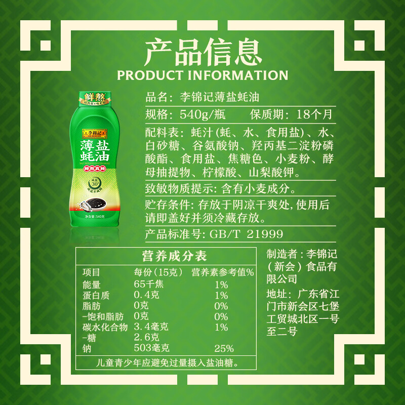 李锦记 薄盐蚝油540g 【减盐 0脂肪】挤挤装 鲜蚝熬煮 蘸拌炖捞炒提鲜