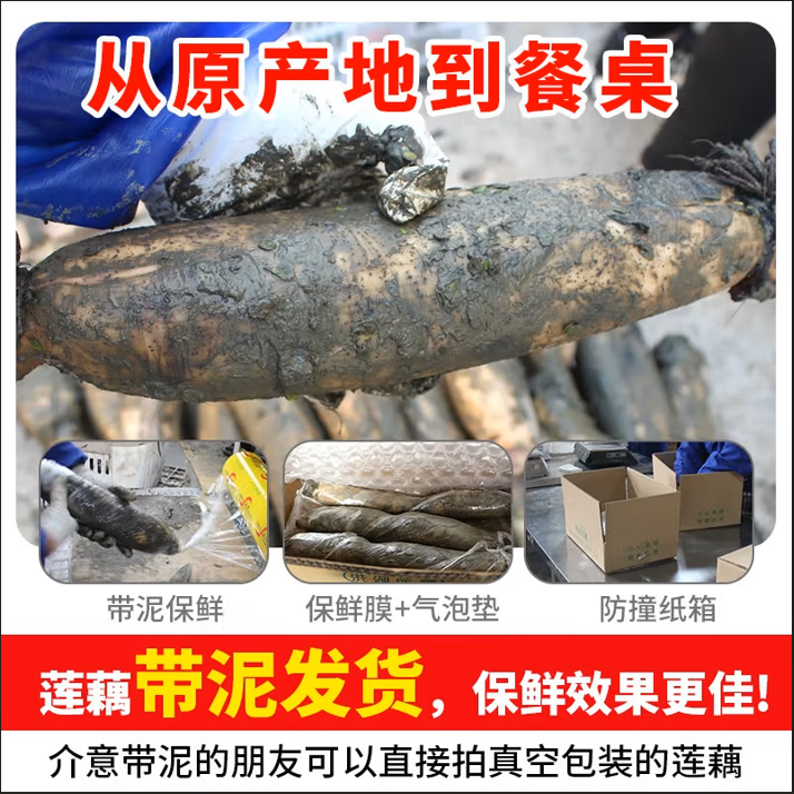 京觅湖北莲藕 粉藕 带泥锁鲜 净重3斤装 新鲜蔬菜源头直发 包邮