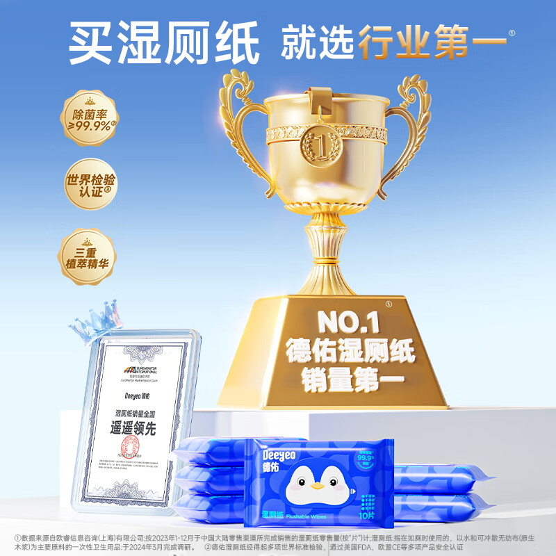 德佑企鹅湿厕纸小包便携10抽*10包 厕纸湿巾洁厕如厕湿纸巾