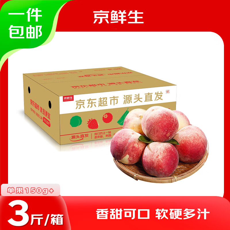 京鲜生 金秋红蜜桃 净重3斤 单果150g+ 桃子生鲜水果 源头直发