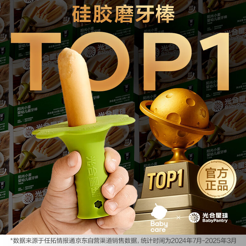光合星球babycare儿童零食宝宝婴幼儿磨牙棒蔬菜味64g【带硅胶手持器】