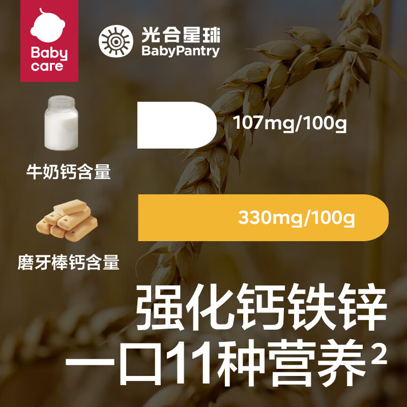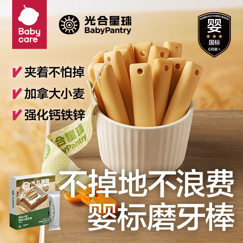 光合星球babycare儿童零食婴幼儿磨牙棒牛奶味64g宝宝6月【升级带孔防滑】