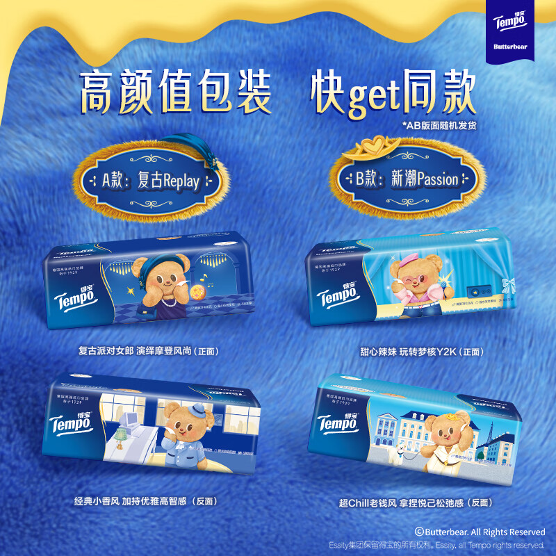 得宝(TEMPO)黄油小熊联名抽纸4层90抽*4包 纸巾 餐巾纸 卫生纸