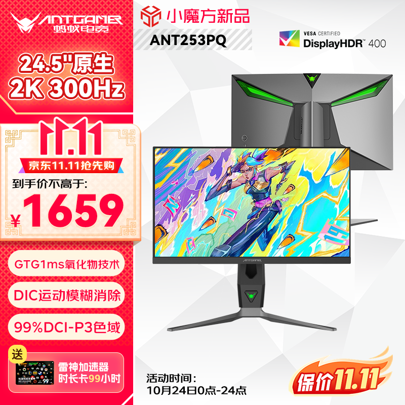 ANTGAMER蚂蚁电竞 24.5英寸2K300Hz显示器 氧化物FastIPS 10Bit HDR400 1msGTG DIC技术护眼低蓝光ANT253PQ