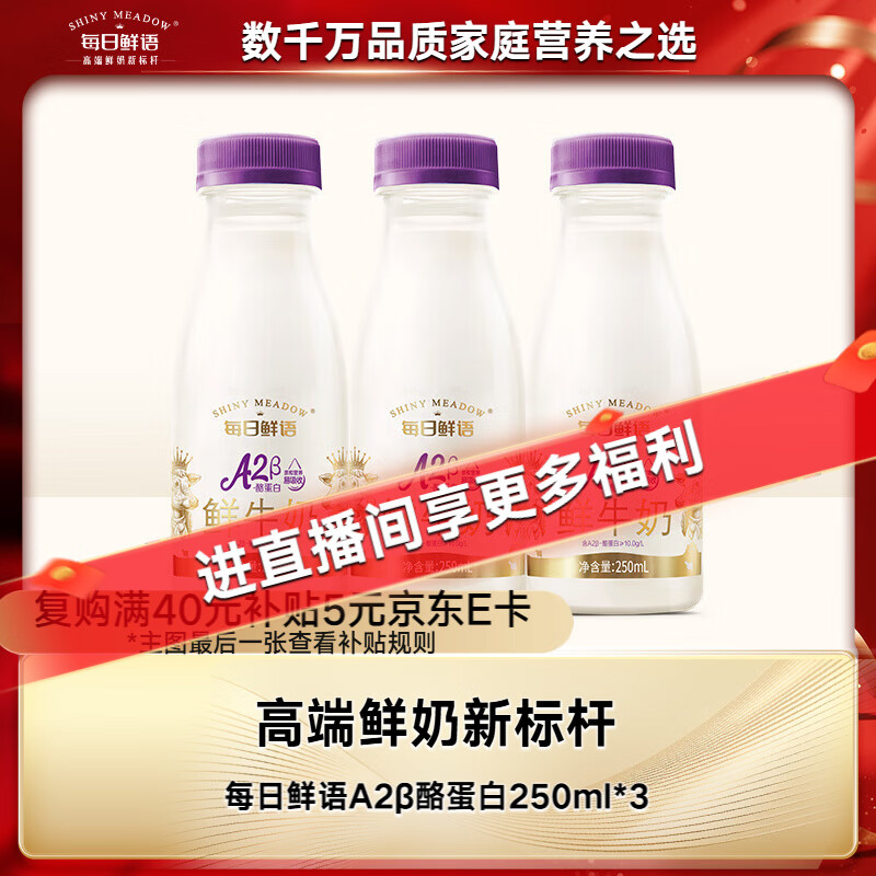 每日鲜语A2β-酪蛋白鲜牛奶250ml*3瓶