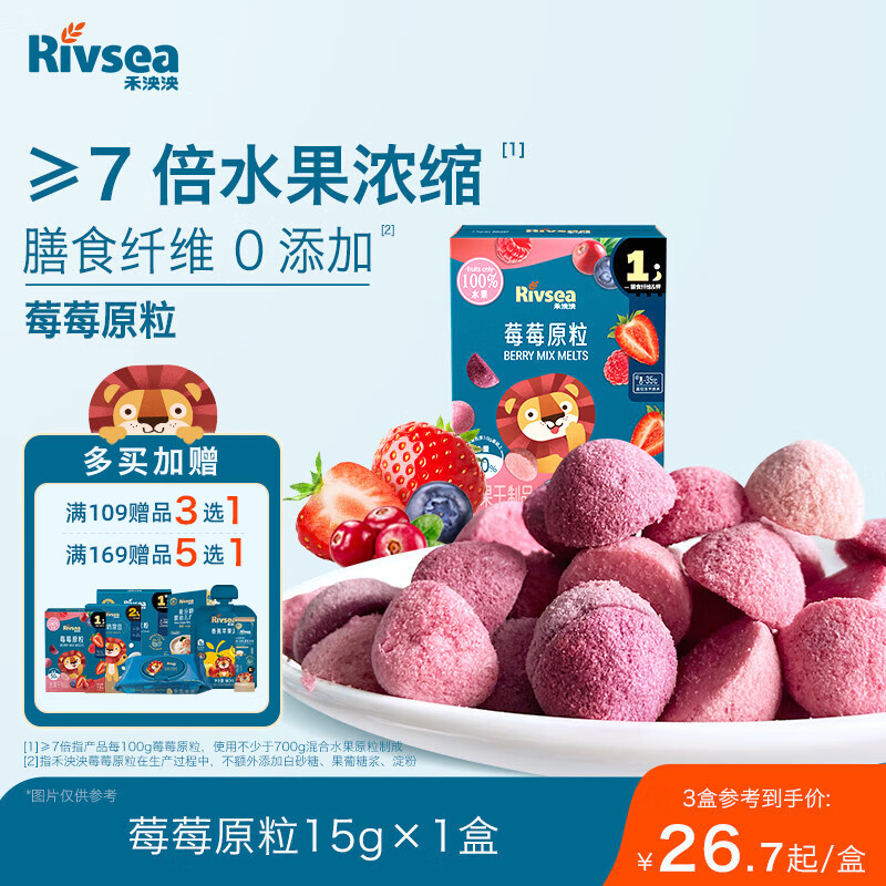 禾泱泱7倍水果浓缩莓莓原粒15g 宝宝儿童零食100%水果入口易溶