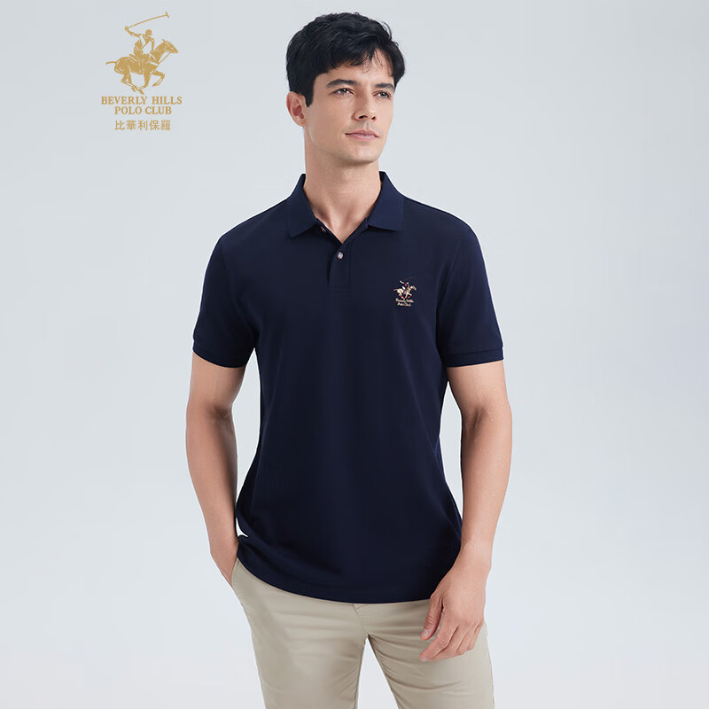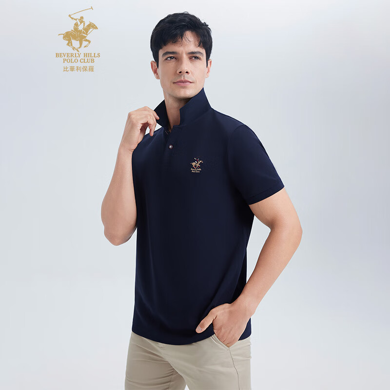 比华利保罗【珠地网眼】2025夏季新款男士休闲短袖polo衫 宝蓝色 L