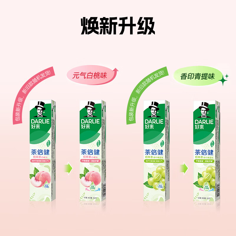 好来(DARLIE)(原黑人)茶倍健初萃茶白桃味牙膏160g果味清新护龈新旧包装随机
