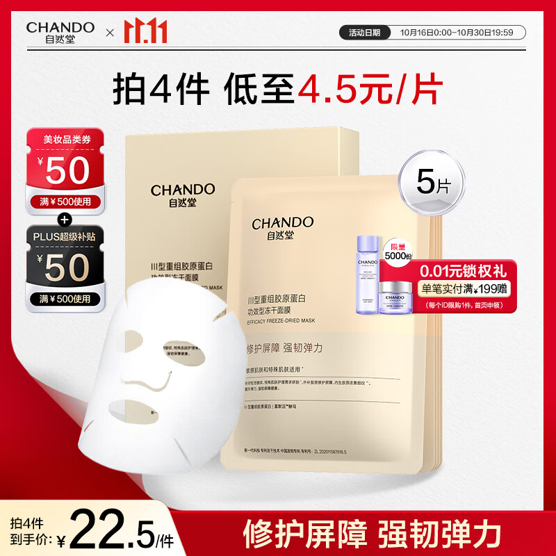 自然堂冻干胶原面膜0.65g×5片修护抗初老紧致敏肌可用护肤品女礼物