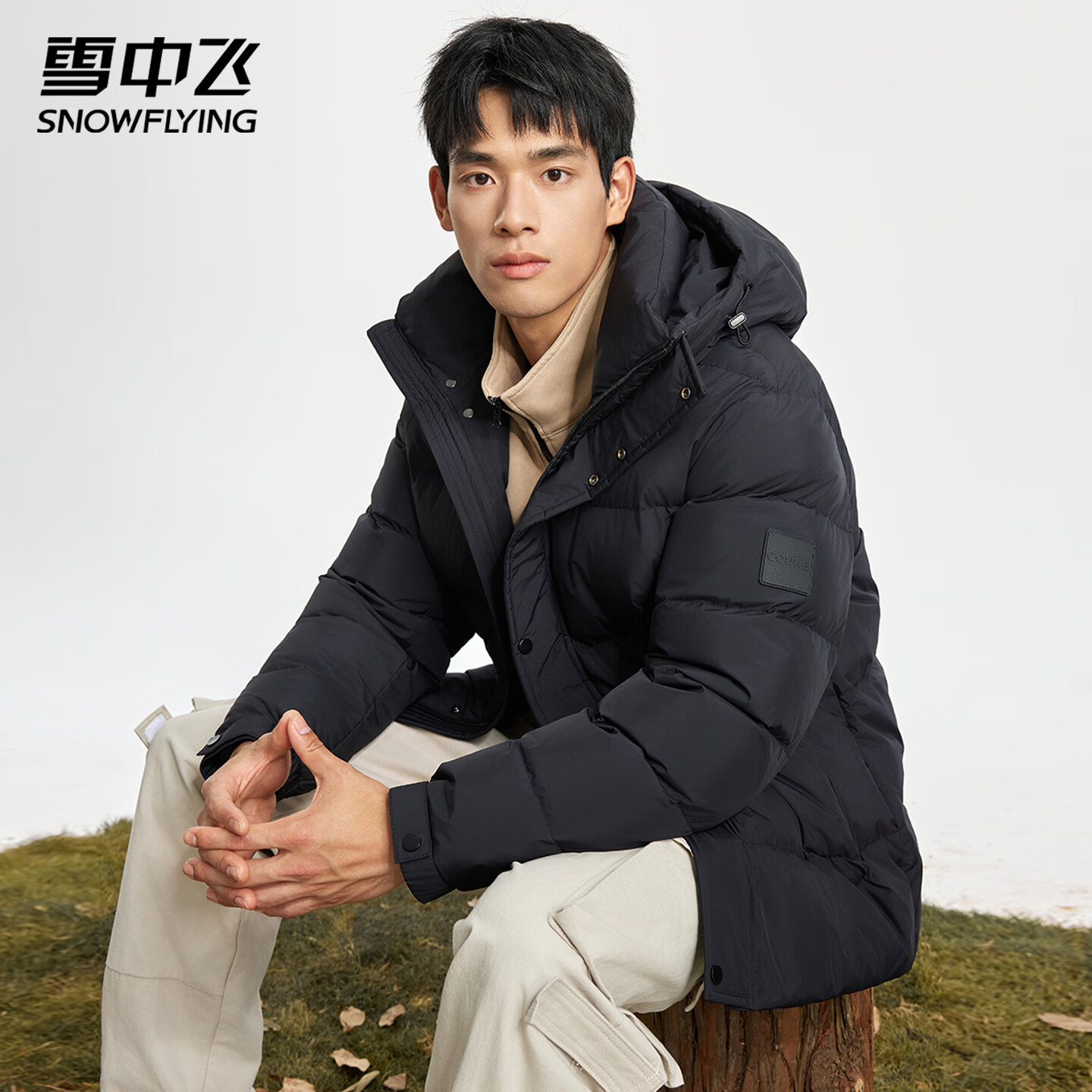 雪中飞高充绒连帽羽绒服男士冬季户外出勤休闲三层保暖防寒科技羽绒外套 黑色 L (175)