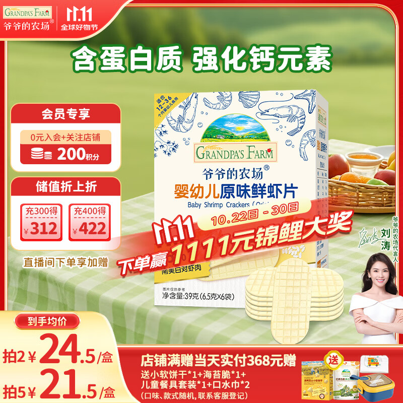 爷爷的农场婴幼儿鲜虾片原味宝宝零食儿童零食 出游哄娃39g 婴儿零食12月+