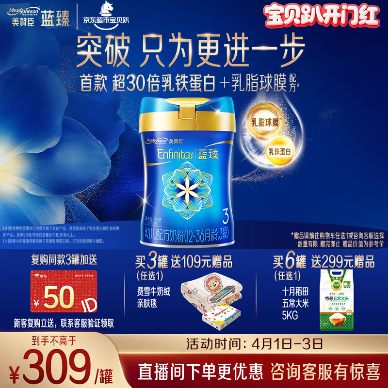 美赞臣蓝臻 幼儿配方奶粉 3段(12-36个月)820g*1罐 实证乳铁蛋白