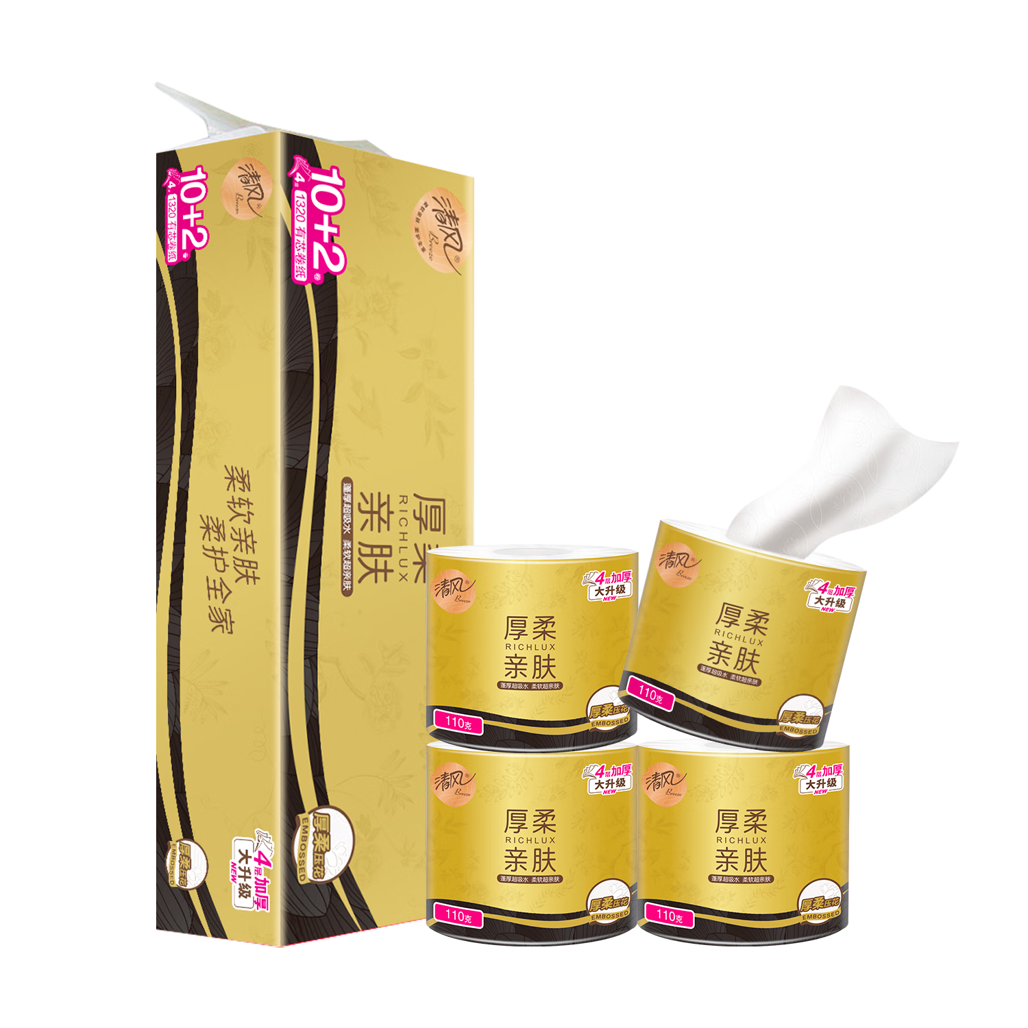 清风【李昀锐同款】有芯卷纸 黑金4层加厚110克*12卷 卫生纸