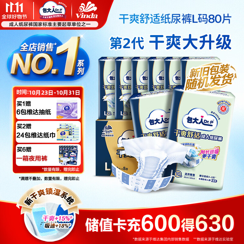 包大人(Dr.P)基础型成人纸尿裤L80片(腰围:80cm-130cm)老年人产妇尿不湿