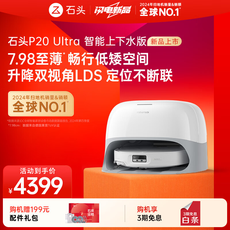 石头(roborock)扫地机器人扫拖一体 P20 Ultra 自动上下水版 热水洗拖布擦地拖地洗地机P20极光增强【升级版】