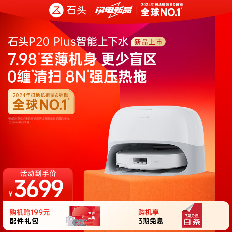 石头(roborock)扫地机器人扫拖一体 P20 Plus 自动上下水版 自动集尘热水洗拖布擦地拖地洗地机吸尘器 A1960RR
