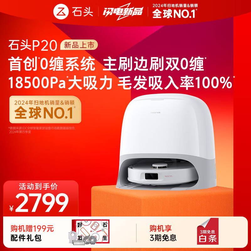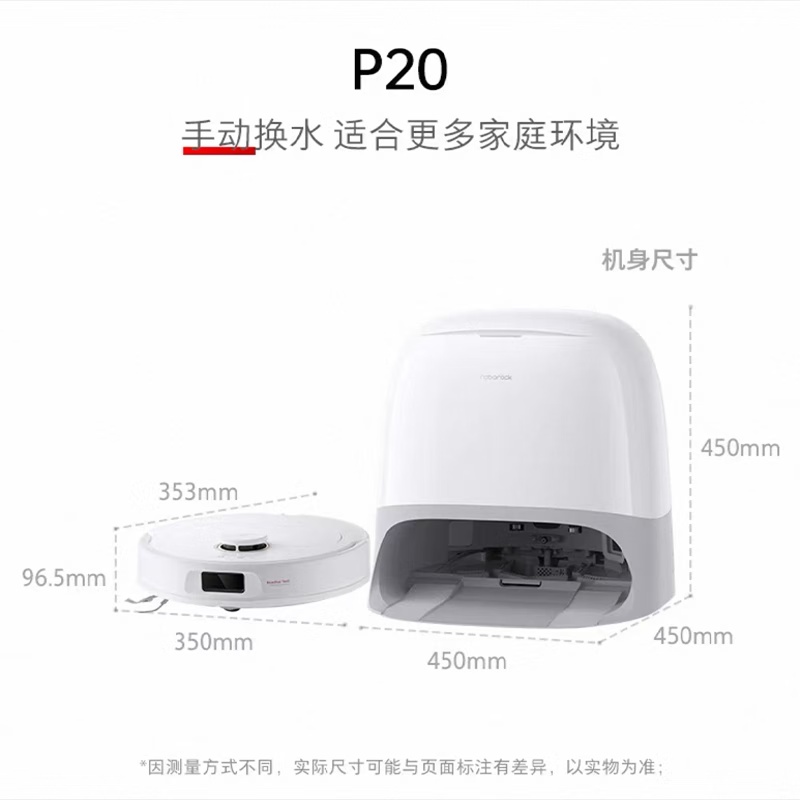 石头(roborock)扫地机器人扫拖一体 P20 扫拖洗烘一体机 自动集尘烘干补水擦地拖地 A1690RR