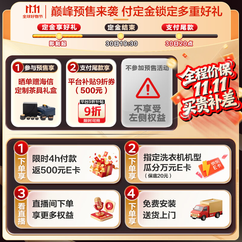 海信(Hisense)璀璨棉花糖热泵洗烘一体机E8Q-1 全家筒全自动滚筒洗衣机 大容量健康活水洗WH130E8Q-1 以旧换新