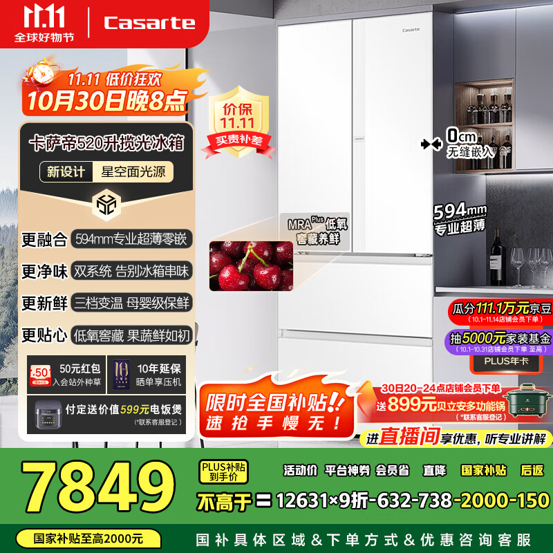 卡萨帝(Casarte)揽光冰箱520升594mm超薄零嵌入式双系统法式多门一级能效国家补贴20%冰箱BCD-520WGCFDM4WKU1