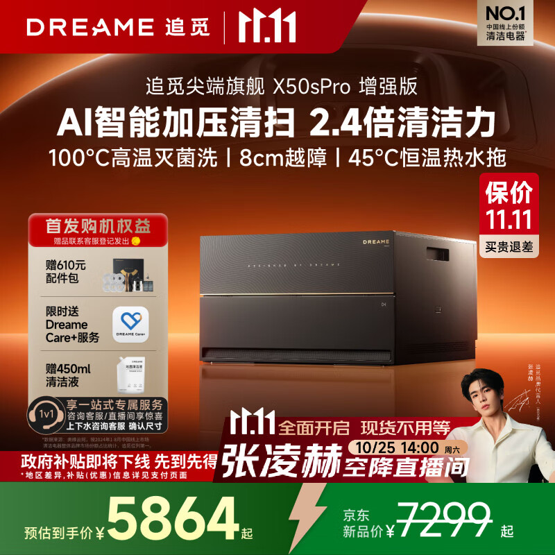 追觅【张凌赫代言】X50sPro增强版扫地机器人扫拖一体自动清洗全自动基站自清洁家用机器人超薄版