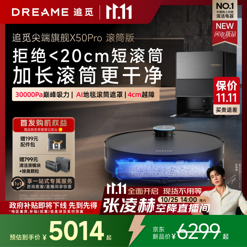追觅【张凌赫代言】X50Pro滚筒版扫地机器人扫拖一体自动清洗全自动基站自清洁洗烘一体水箱版
