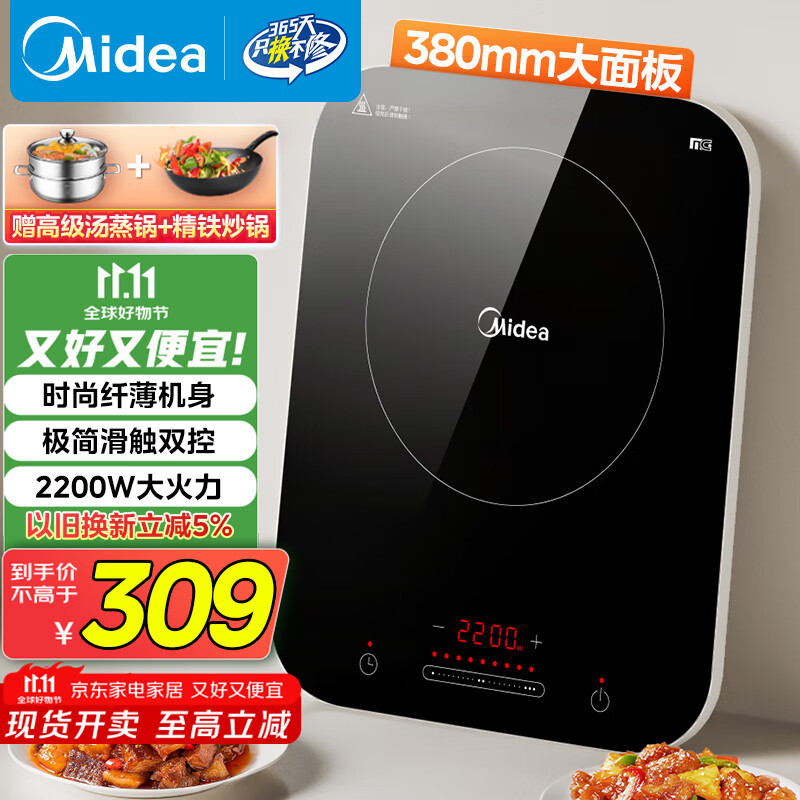美的(Midea)电磁炉电陶炉 家用大功率 2200W 恒匀火技术 智能定时 火锅炒菜套装微晶面板 政府补贴C22-WH2237