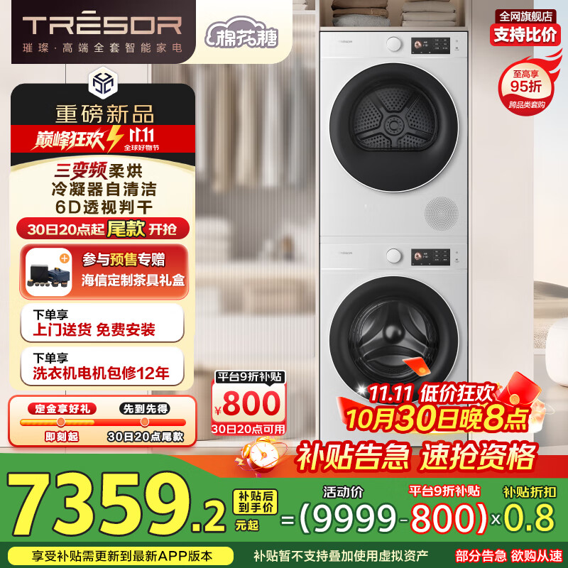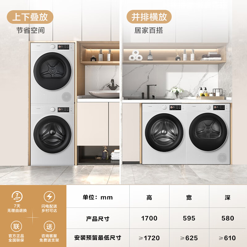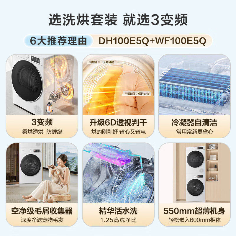 海信(Hisense)璀璨棉花糖洗烘套装E5Q 10KG滚筒洗衣机+三变频热泵烘干机 6D透视判干 WF100E5Q+DH100E5Q