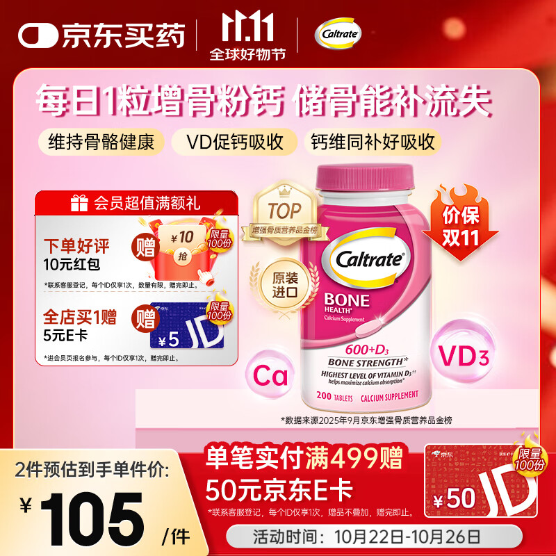 钙尔奇海外 碳酸钙片200粒 成人通用 增骨粉钙 高钙+VD3 【原装进口】