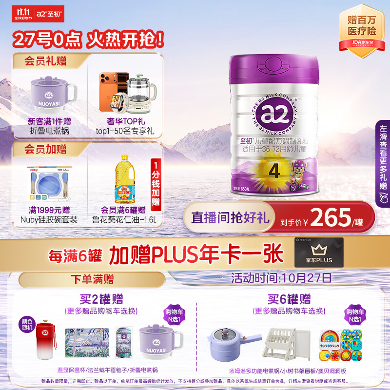 a2至初 4段奶粉儿童配方调制乳粉3-6岁850g 四段儿童奶粉含乳铁蛋白