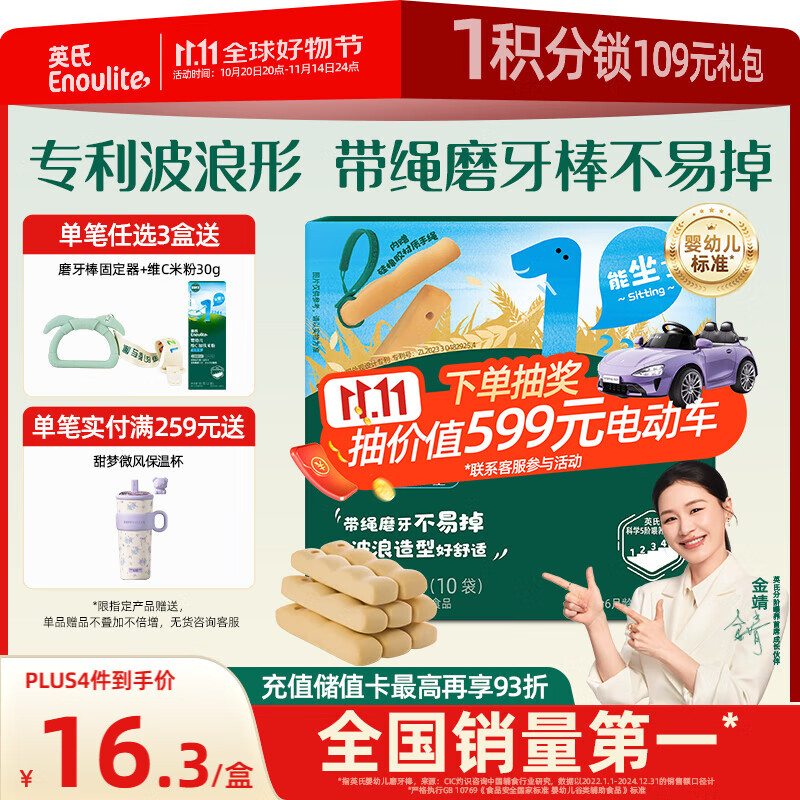 英氏(Engnice)婴幼儿波浪形磨牙棒原味 婴儿宝宝零食出牙磨牙饼干 带绳防掉80g