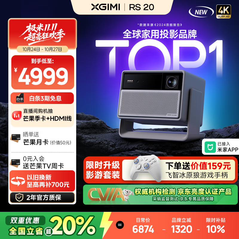 极米RS 20 游戏套装 影游全能 超亮三色激光变焦投影 2800 CVIA 灵动云台 4K超清智能家庭影院