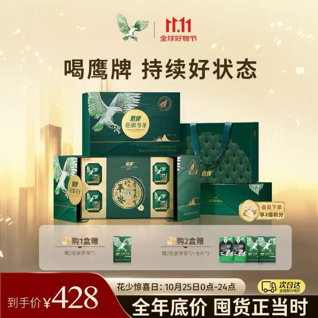 鹰牌 花旗参西洋参茶3g*60包装中秋节送礼精装礼盒经典款含礼袋送爸妈