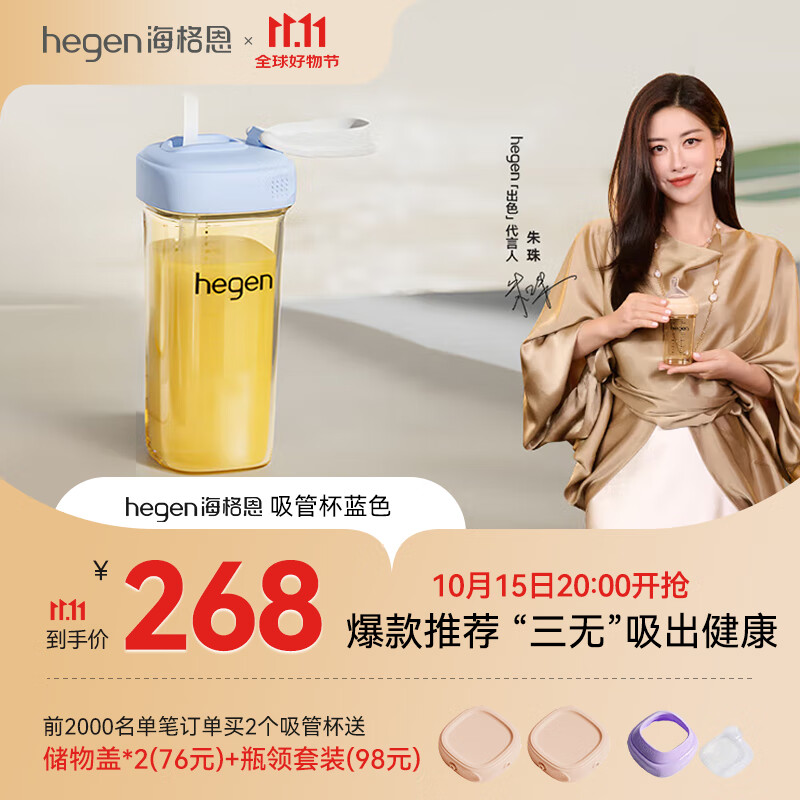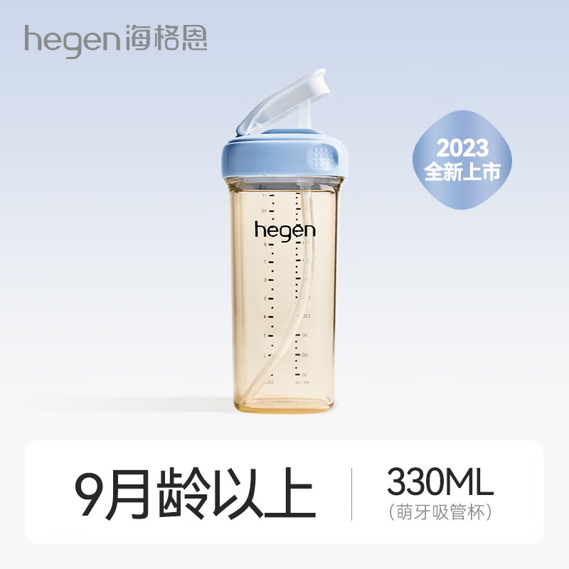 HEGEN海格恩吸管杯1-3岁330ml儿童PPSU多功能学饮杯直饮喝水杯蓝色