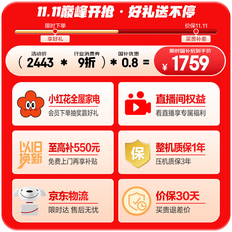 海尔(Haier)家宴539升风冷无霜对开门家用电冰箱双开门一级能效节能535升级款BCD-539WGHSSEDH9国家补贴20%