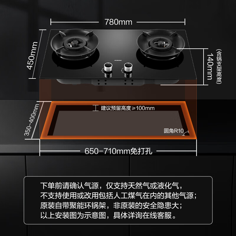 老板(Robam)70%热效率烟灶联动JZT-55B7A-D2燃气灶天然气灶具5.2kW火力煤气灶国家补贴