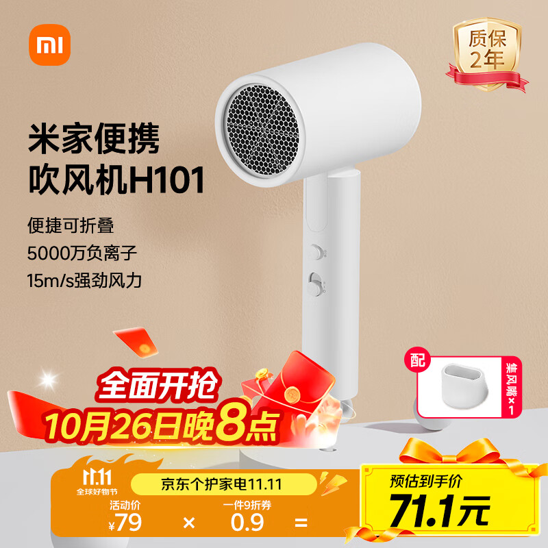 米家小米电吹风机 负离子便携可折叠大风力速干H101家用宿舍学生风筒 出行必备生日礼物推荐 白色