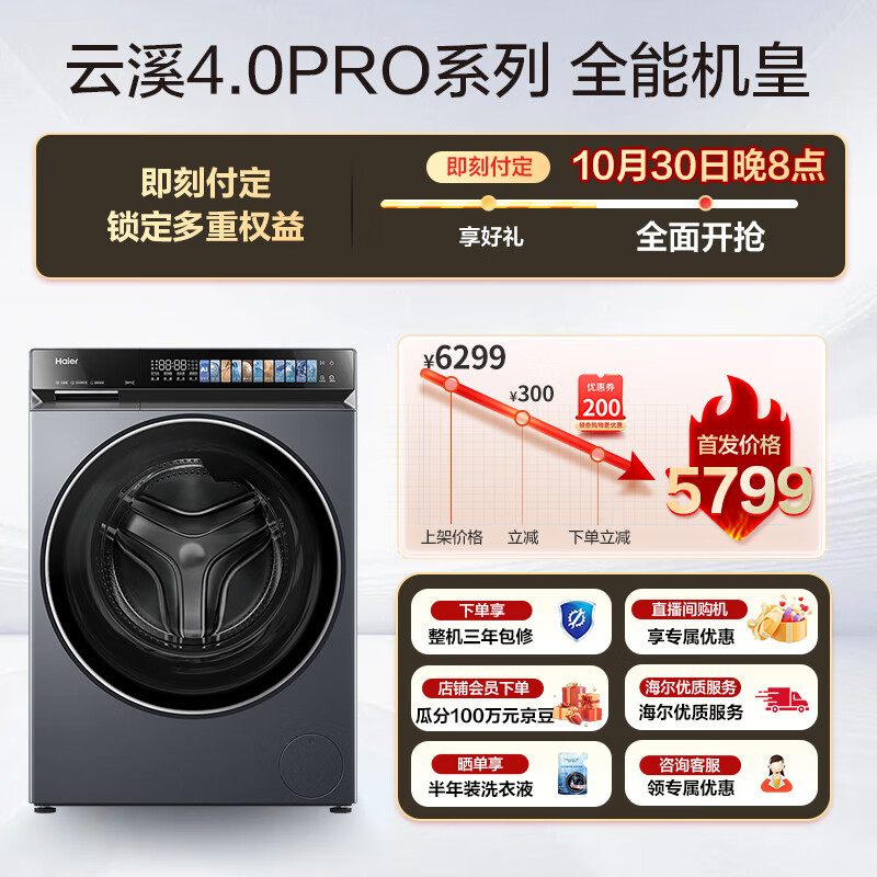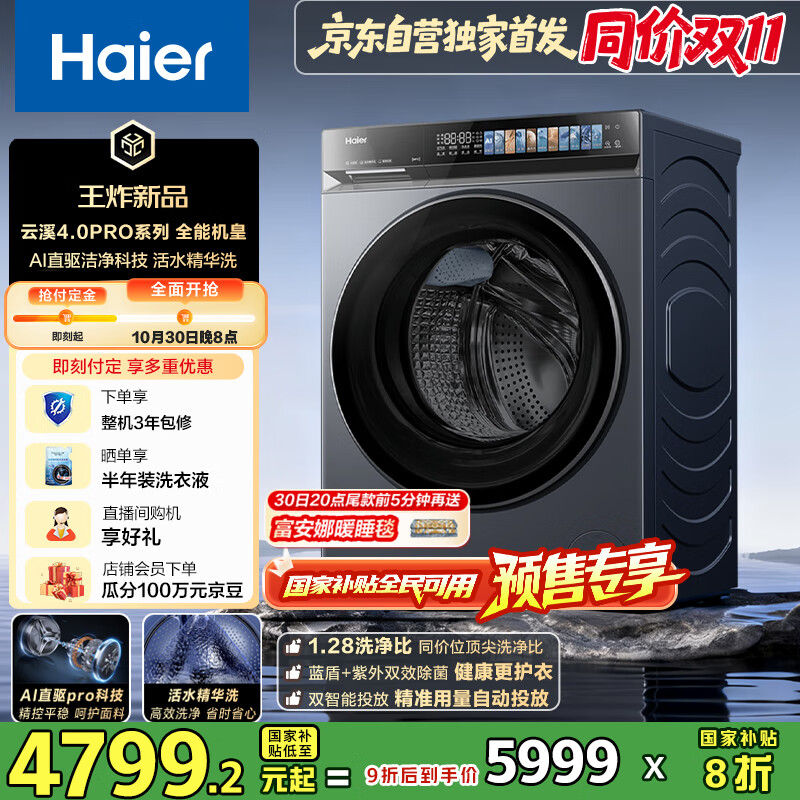 海尔(Haier)云溪4.0Pro系列7KJ3滚筒洗衣机全自动带烘干洗烘一体10公斤自营超薄家用国家补贴一级能效以旧换新