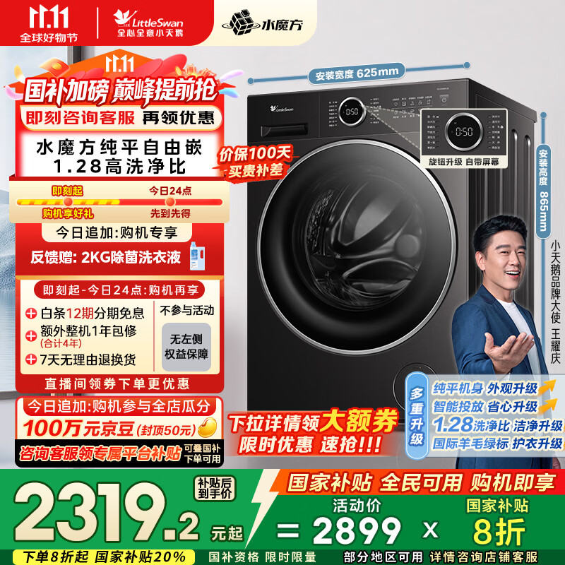 小天鹅(LittleSwan)滚筒洗衣机全自动家用 TG10V628PLUS 水魔方 10公斤 内衣洗 家电国家补贴20% 以旧换新 一级能效