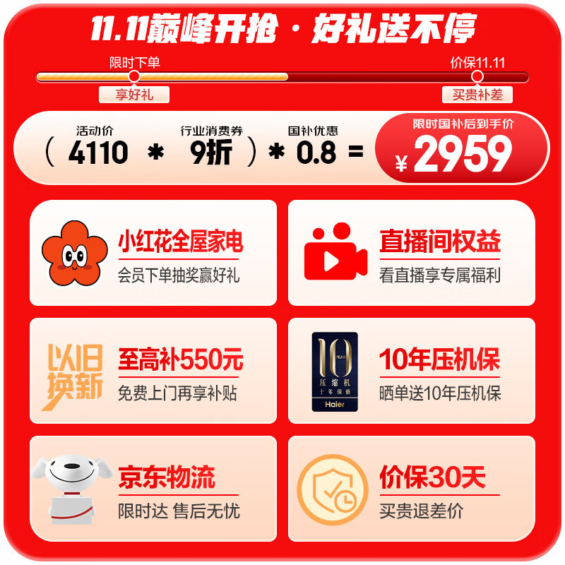 海尔(Haier)小红花-绽放版500升594mm专业超薄十字T型四门一级能效家用电冰箱BCD-500WGHTDEDWVU1国家补贴20%