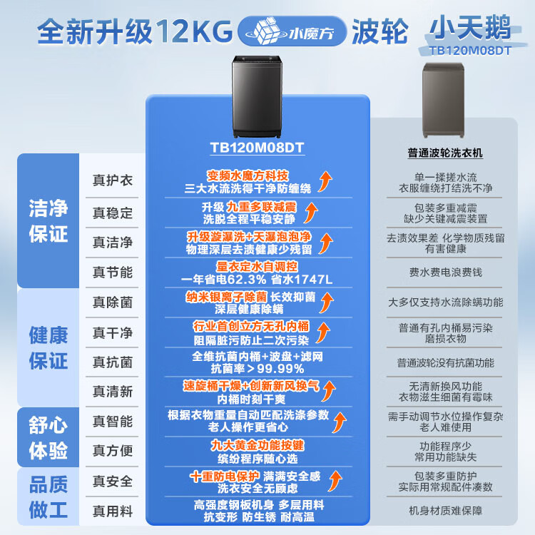 小天鹅(LittleSwan)波轮洗衣机全自动 12公斤大容量 水魔方防缠绕【TB120M08DT】直驱变频 家电国家补贴20% 以旧换新