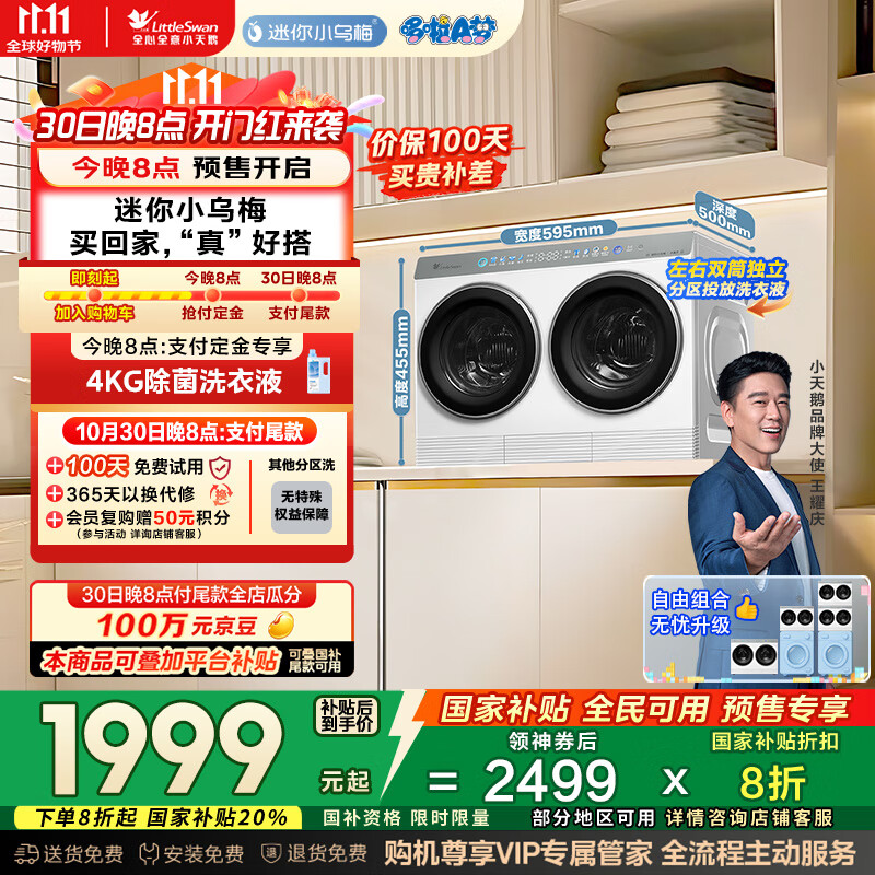 小天鹅(LittleSwan)双筒分区洗 可组懒人三筒 哆啦A梦联名款【迷你小乌梅】洗烘一体 内衣洗衣机 TNDD20-08AIDEW