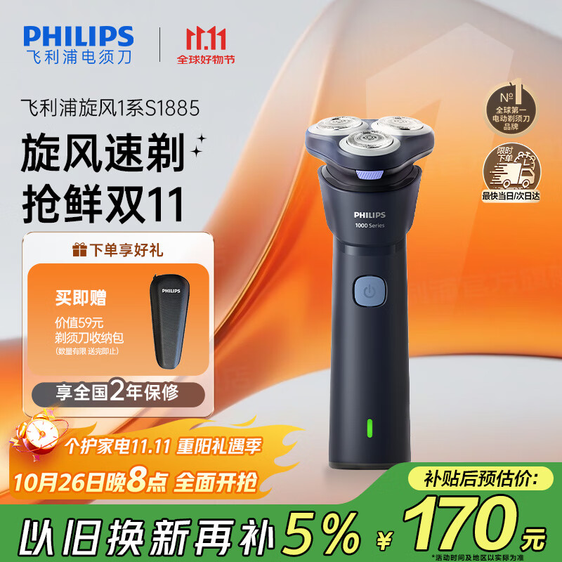 飞利浦(PHILIPS)电动剃须刀新一代旋风1系刮胡刀 风驰切剃3D浮动刀头 送老公 送男友 父亲生日礼物 国家补贴