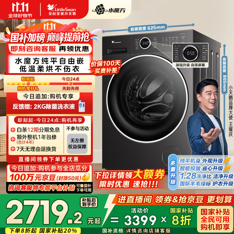 小天鹅(LittleSwan)滚筒洗衣机全自动家用 洗烘一体 TD10V628PLUS 水魔方 10公斤 家电国家补贴20% 以旧换新 一级能效