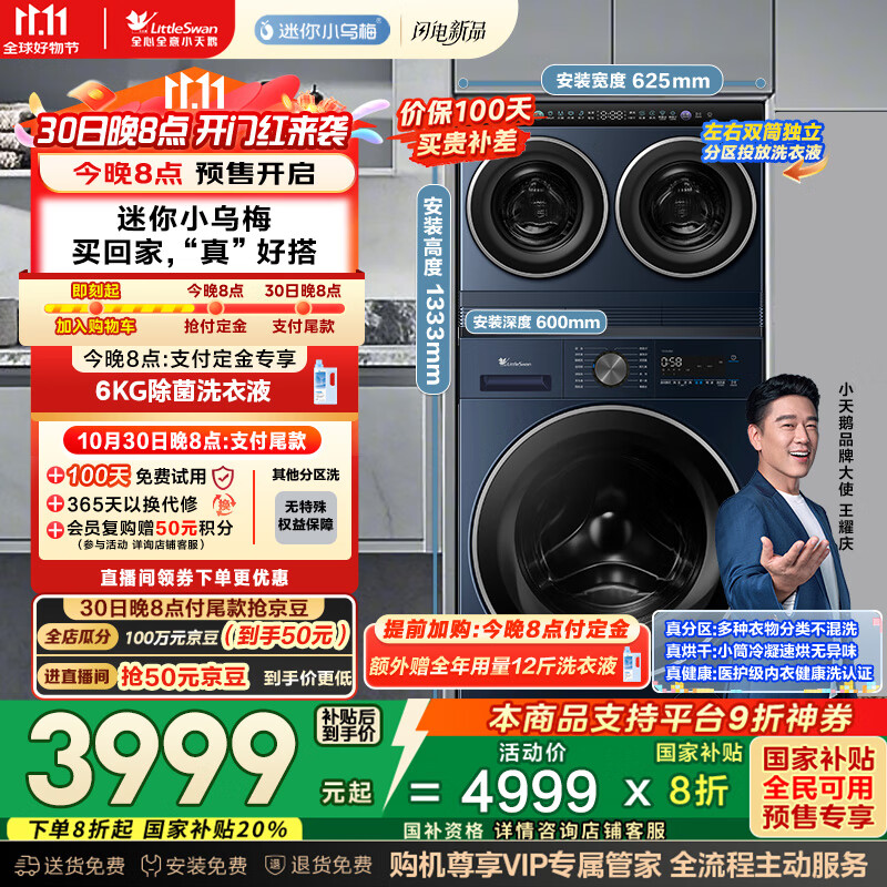 小天鹅(LittleSwan)懒人三筒洗衣机 滚筒洗衣机 可叠放【迷你小乌梅】自由组合 全家筒洗衣机0手洗 内衣洗衣机 三桶